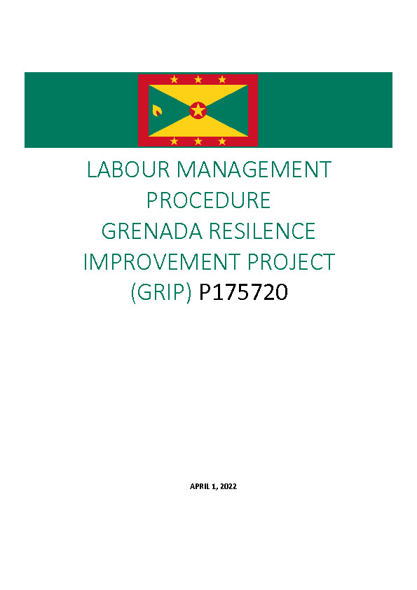This Labour Management Procedures (LMP or Procedures) is developed to comply with the Environmental and Social Standard 2 (Labor and Working Conditions) (ESS2) of the World Bank, which applied to the Grenada Resilience Improvement Project (GRIP or Project)- P175720. The Procedures seek to ensure that measures are in place to manage risks associated with the labour and working conditions of Project Workers, as defined in ESS2, under the project and help determine the resources necessary for effective planning and management.